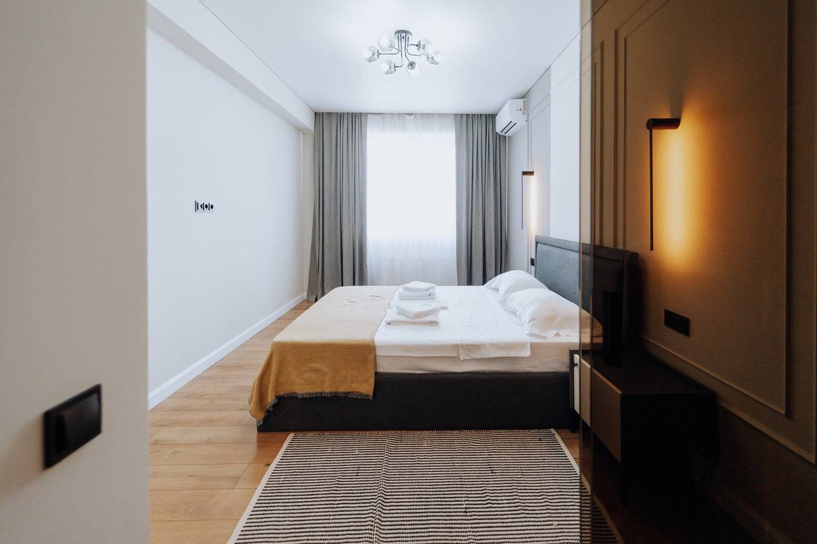 Discover a stunning modern 2-bedroom apartment in the heart of Chișinău! Located on the 12th floor, it offers breathtaking city views and is steps away from a shopping mall and park. Recently renovated and fully furnished, this brand-new space is perfect for your stay. Enjoy stylish interiors, a cozy atmosphere, and convenient access to everything the city has to offer. Book your perfect getaway now!