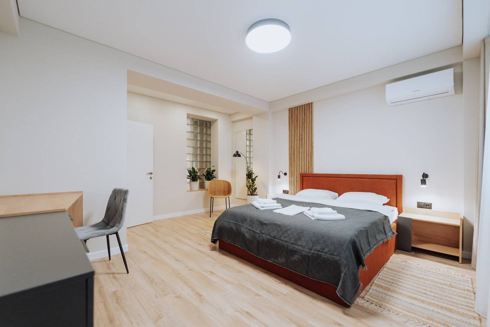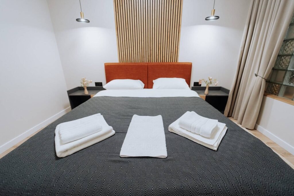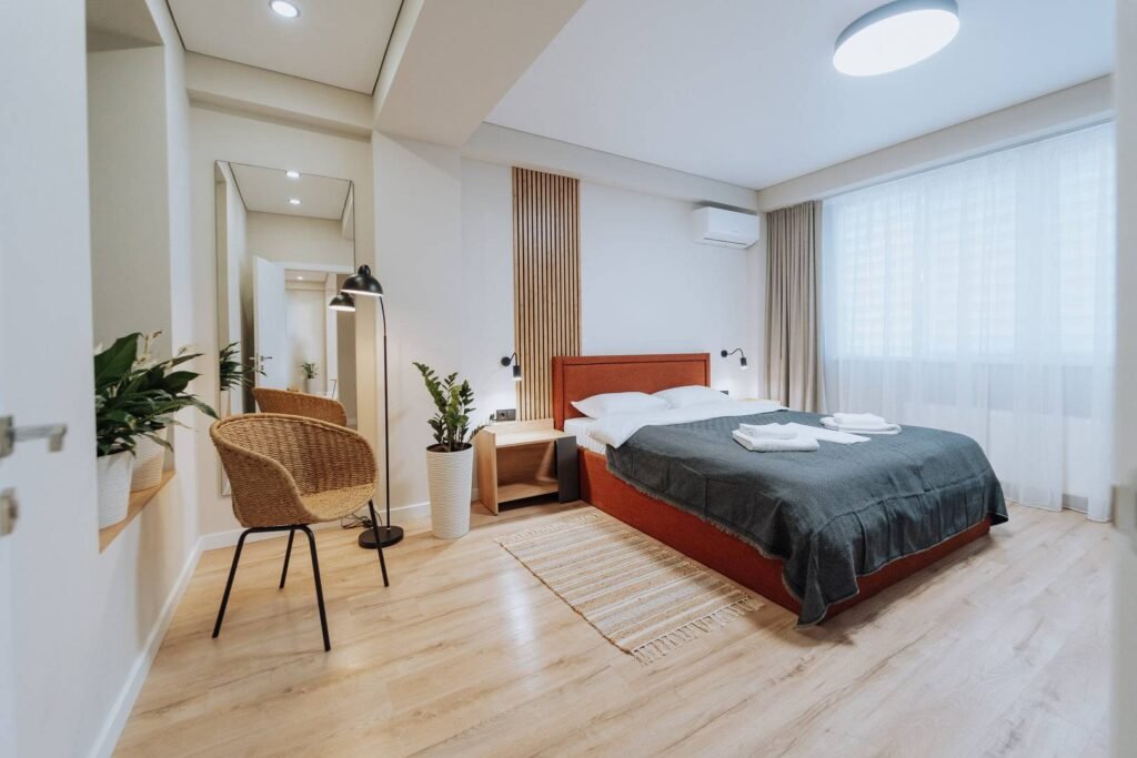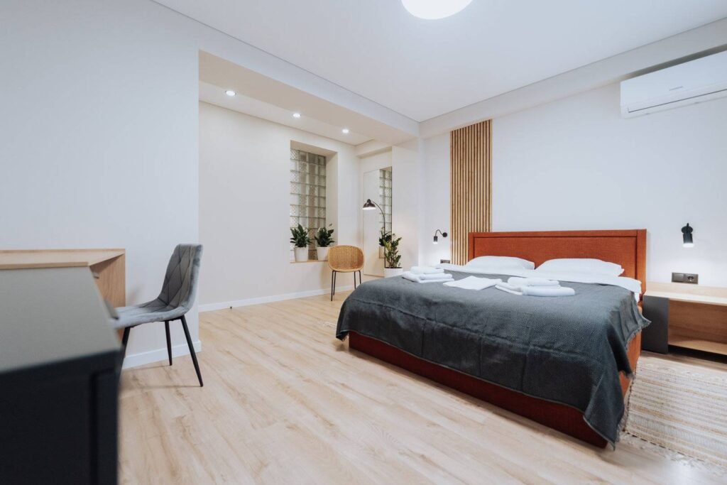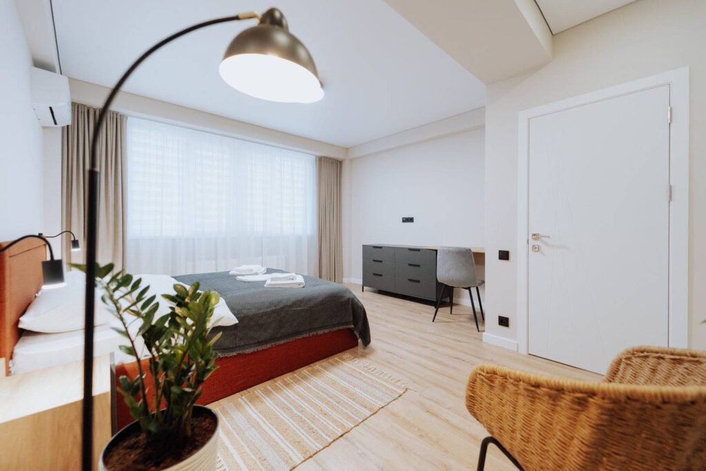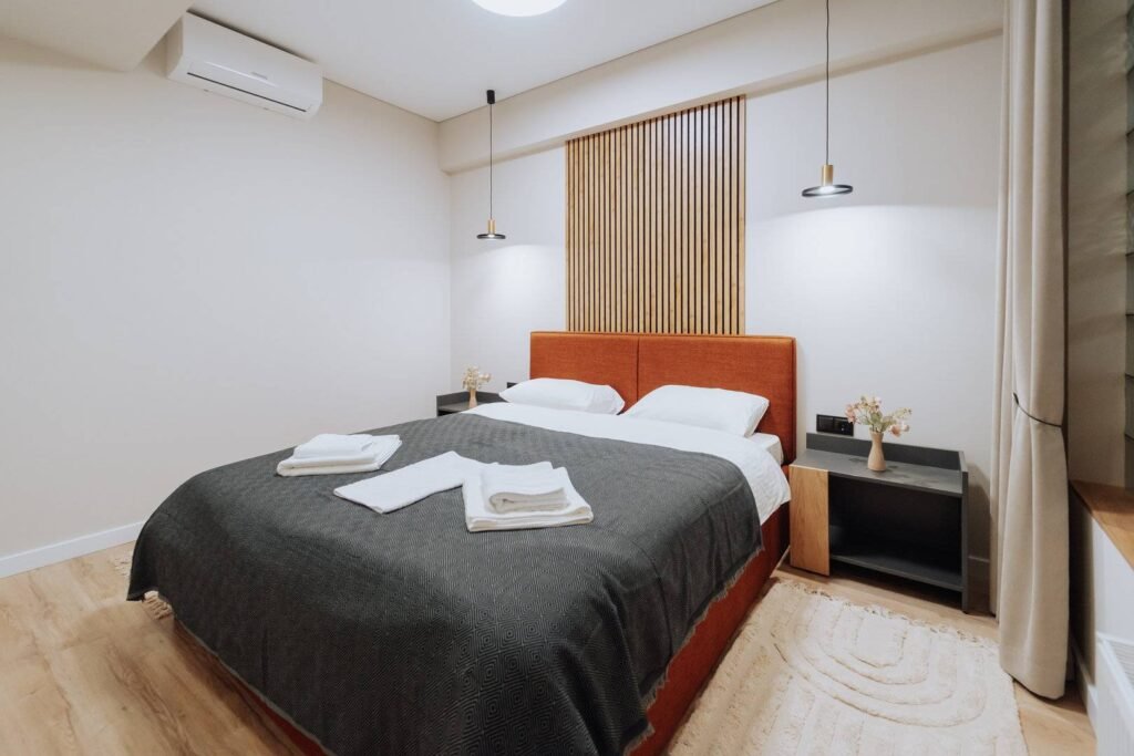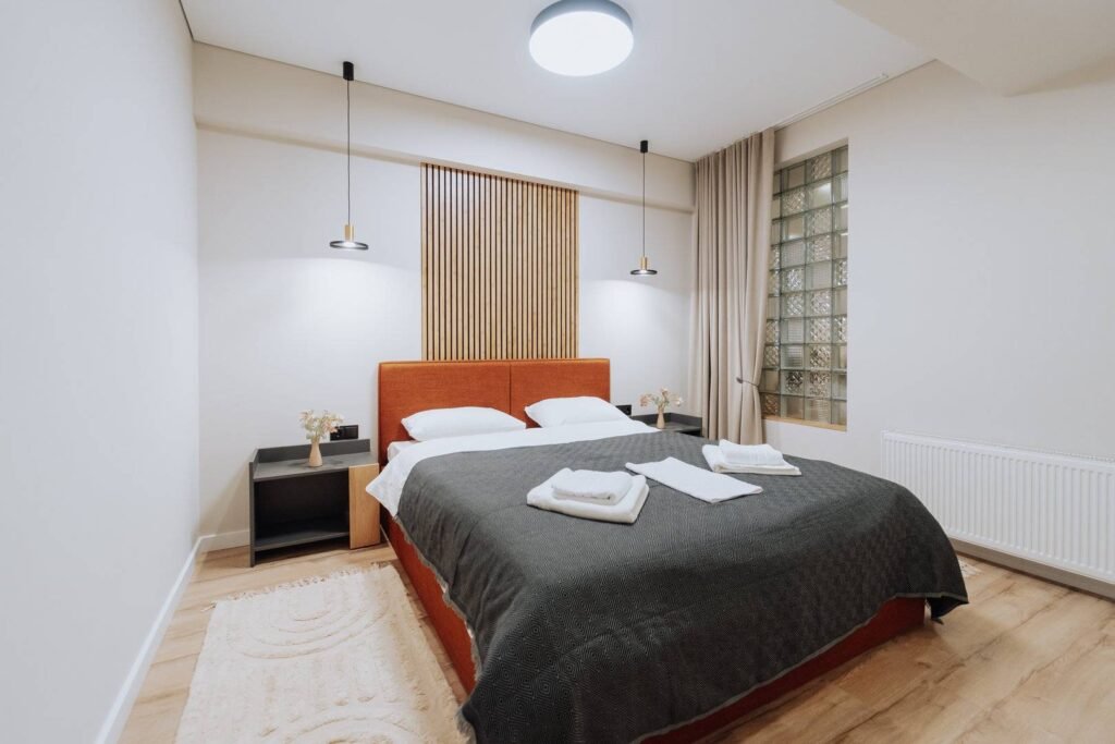 Welcome to your perfect stay in Chisinau! This modern 2-bedroom apartment is located on the 1st floor of a new, contemporary building in the Rîșcani district. Enjoy the comfort and convenience of full amenities, including a fully equipped kitchen, free Wi-Fi, air conditioning, and fresh linens. Situated near a beautiful park, it’s an ideal spot for relaxation and outdoor activities. Whether you’re here for work or leisure, this stylish apartment offers a cozy and convenient home away from home.